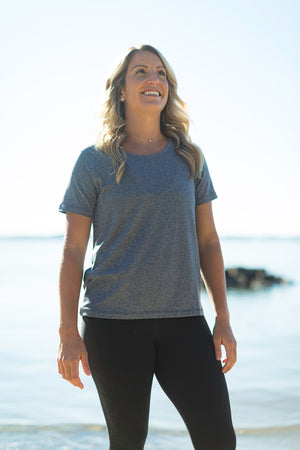 Our classic tee is made from buttery-soft EGEN® Fabric, which blends Recycled Polyester (rPET) and spandex. It is designed to be the ideal relaxed fit tee – flattering for all and wearable for any occasion. The drop-hem offers slightly more coverage at the back while hitting just right in the front.