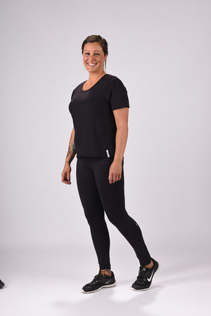 Our classic tee is made from buttery-soft EGEN® Fabric, which blends Recycled Polyester (rPET) and spandex. It is designed to be the ideal relaxed fit tee – flattering for all and wearable for any occasion. The drop-hem offers slightly more coverage at the back while hitting just right in the front.